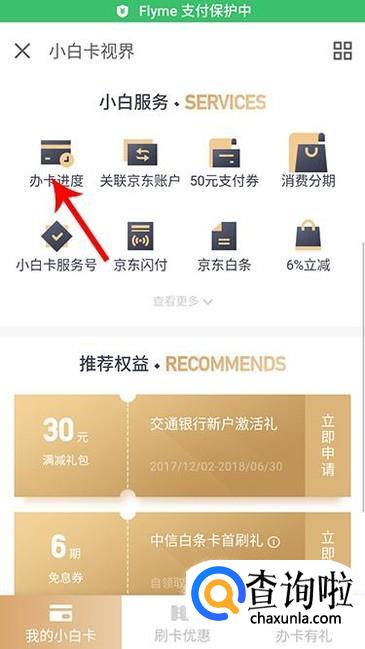 提交之后肯定要关注办卡进度,在“我的小白卡”中点击“办卡进度”