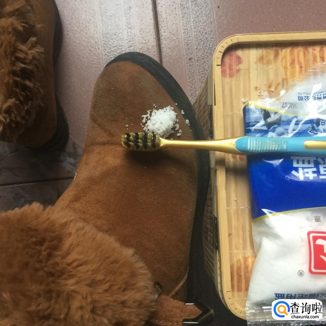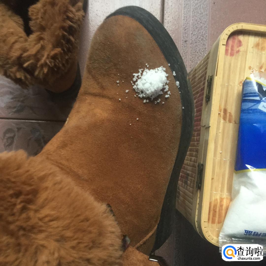 然后再翻毛鞋脏的部分,撒上适量的食用盐。
