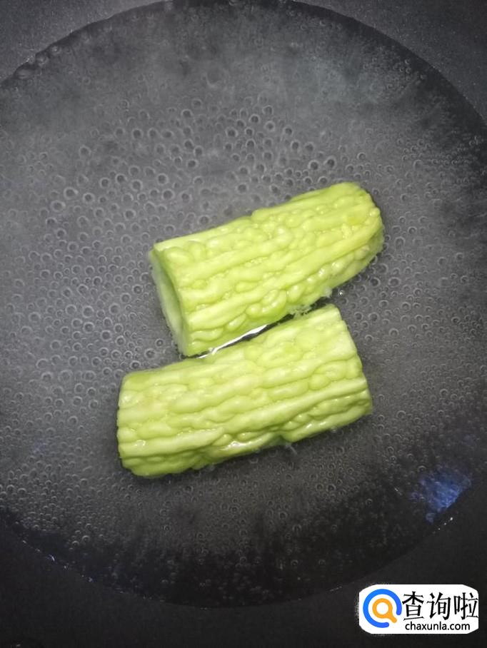 锅中放入适量清水,水开后,放入苦瓜焯水三分钟。