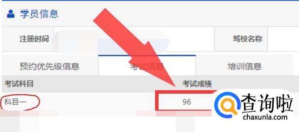 然后在【考试成绩】的下方就是你查询的科目一考试成绩了。