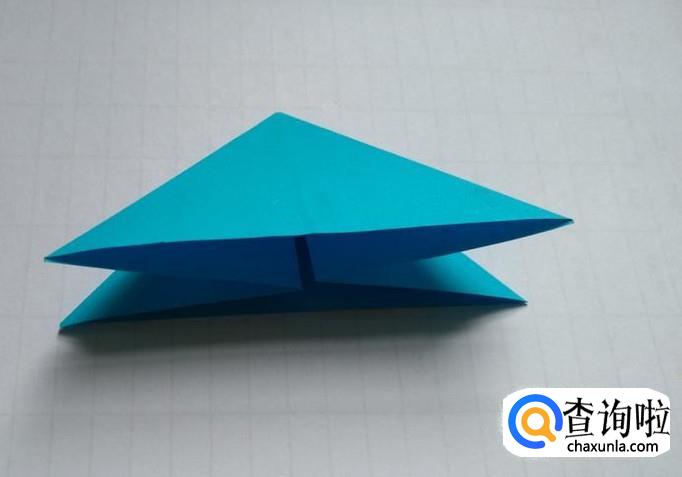 先将折纸上层的三角形的两面分别向上折(第一图),然后把下层同样也折向中心线(第二图)。