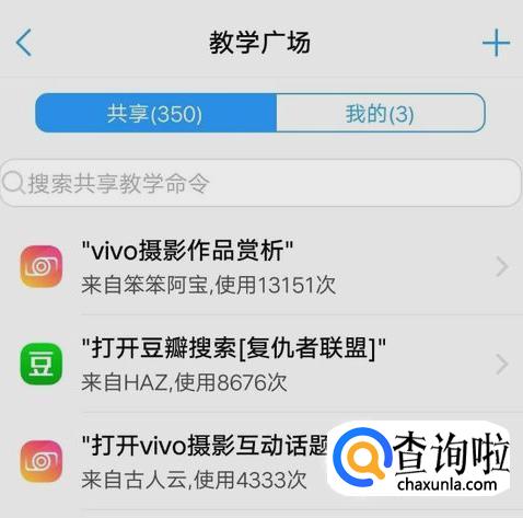 接下来就是【教学广场】,在里面有【共享】和【我的】两个分类,在【共享】里面就是一些其他的vivo用户分享的一些东西。