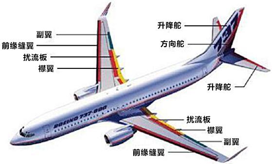 大多数飞机主要组成部分有机体、起落装置、动力装置、飞行控制系统、机载设备,以及其它系统,机体包括机翼、机身、尾翼。飞行中作用在飞机上的主要有升力、 重力、 拉力和阻力。