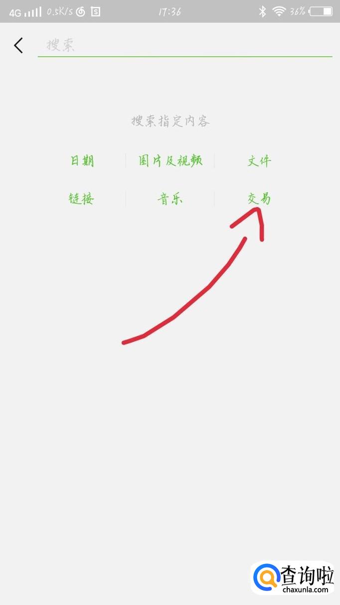 点击“查找聊天记录”选项,如图1箭头所示。会出现一个新的界面,点击“交易”选项,如图2箭头所示。这样你就能看到具体的转账记录了。