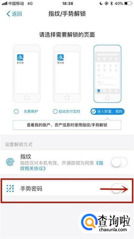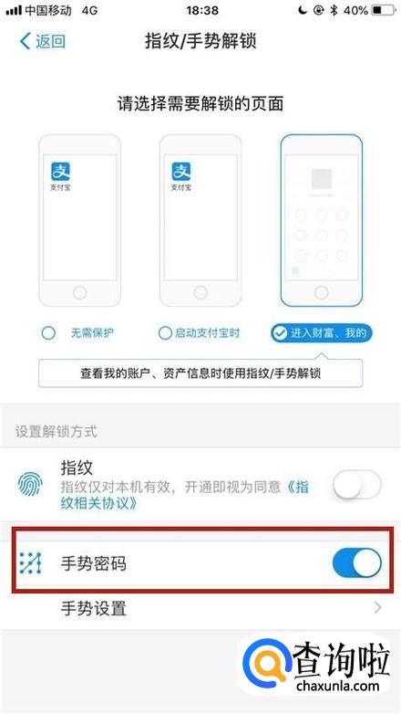 通过以上操作,我们就成功开启了支付宝的手势密码了。