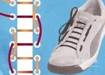 这种绑鞋带的方法适合懒人,具体的操作很简单,只需要将鞋带以跳孔的方式来进行穿插即可,如左侧第一个孔直接与第四个孔相连等,能节省下很多的时间和精力。
