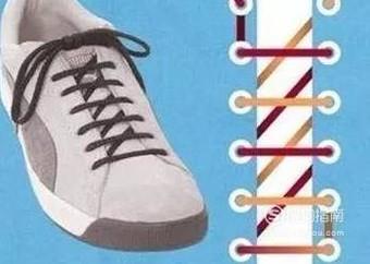 这种系带方式适用于双色鞋带,将两条鞋带分别从左侧穿到右侧,再从右侧穿回左侧,反复进行再系带即可,能让鞋子看起来立体很多。