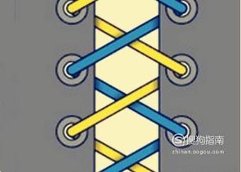 若想要寻求点特别感的话,则可以尝试下这种交叉法,将鞋带按照一字状穿好,之后从左侧的第一个孔直接穿到右侧的第三个孔,反复来回穿插,最后系带即可。