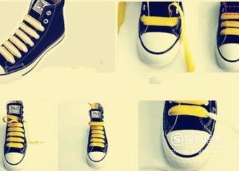 具体的操作和蝴蝶结法相似,将两条不同颜色的鞋带接在一起后,从左侧穿到右侧,再穿到同侧之后系带即可,能增添几分个性感与时尚感。