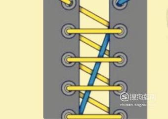 这种系带法很特别,首先将鞋带从左侧第三个孔穿到右侧第三个孔,使其呈现出一字型,之后穿回到第一个孔,再有第一个孔直接穿到第四个孔,使其呈现出竖直状,然后再交叉着穿好并系带。