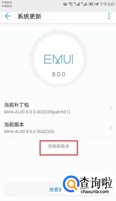 弹出的界面,就会进入检测是否有新版本的系统,检测完后,我们看到没有新版本,说明此时已经是最新版本了,如果有新版本我们点击下载然后安装就可以了。