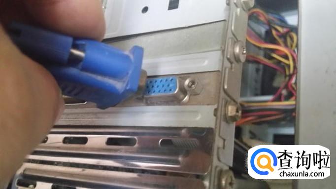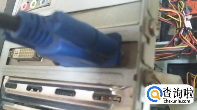 然后是主机与显示器的连接。显示器上的视频线的另一头接在独立显卡的对应插口上,把固定螺丝拧紧即可。这里需要说的是,如果电脑有集成显卡,再有独立显卡的情况下,一定要插在独立显卡上,否则显示器不会显示。