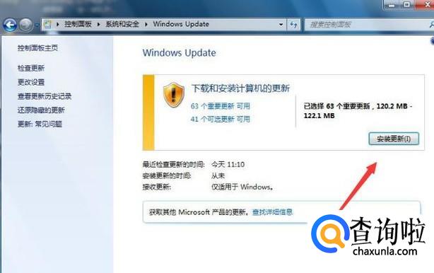 3、系统会检查当前系统需要更新的补丁,然后点击【安装更新】