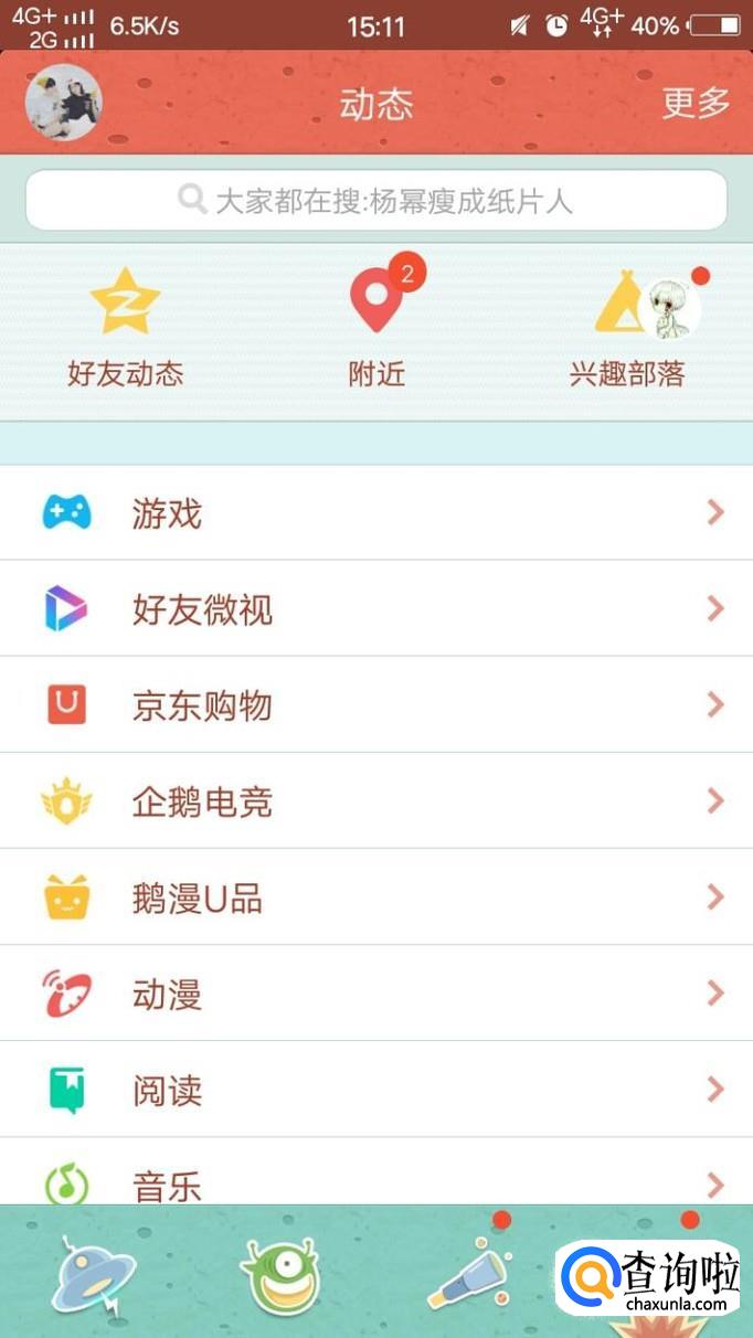 然后我们在消息页面点击下方的动态,再点击好友动态进入到好友动态页面。