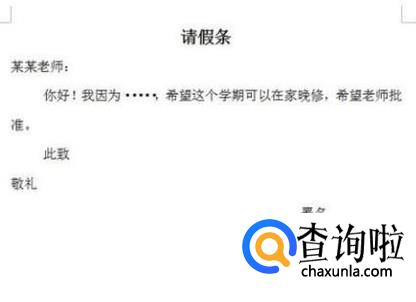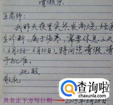 在写原因的时候,一定要记得写上需要请假的天数,一般格式是:由于某某某原因,需要请假X天,希望尊敬的某某某给予批准。