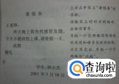 在日常的生活当中,我们会因为各种大大小小的事情需要向单位或者学校请假,那么请假条的标准写法是什么呢,我来阐述一下我的意见。