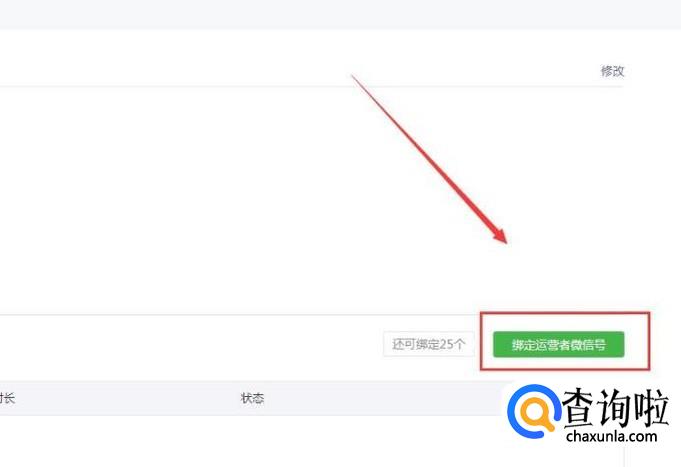 如下点击的是“管理员和运营者设置”右侧的“详情”按钮,这时会打开如下页面,在此页面中找到并点击“绑定运营者微信号”按钮,进入下一个页面中。