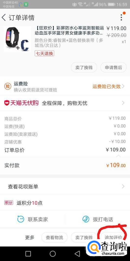 选择订单后,点击界面下方的的追加评价。