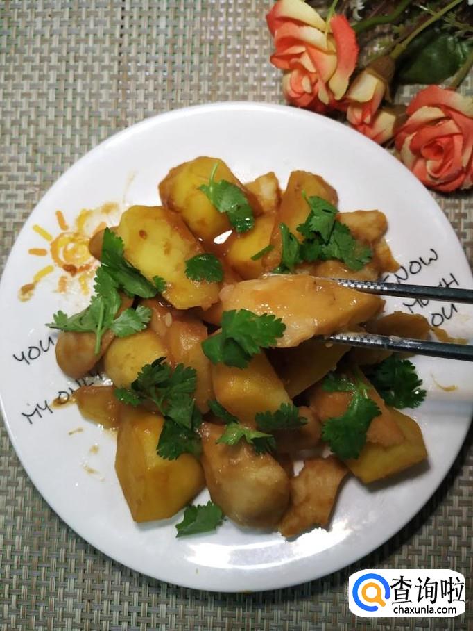 收干汤汁后,出锅装盘,再准备适量香菜,洗净后,撒在上面就可以吃了,真的太好吃了。