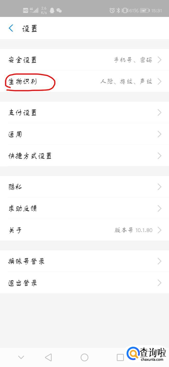 进入界面。点击“生物识别”。如下图。