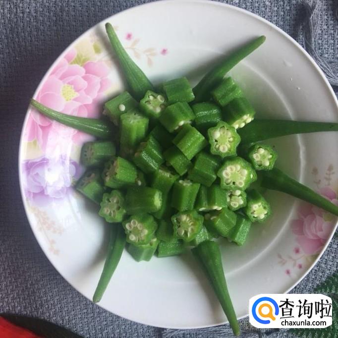 接着把秋葵切好摆盘备用,如下图所示。