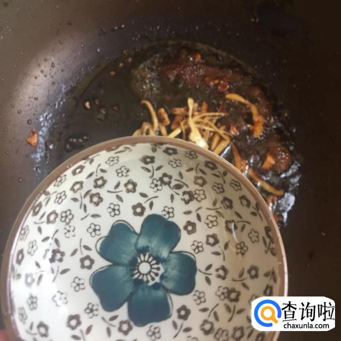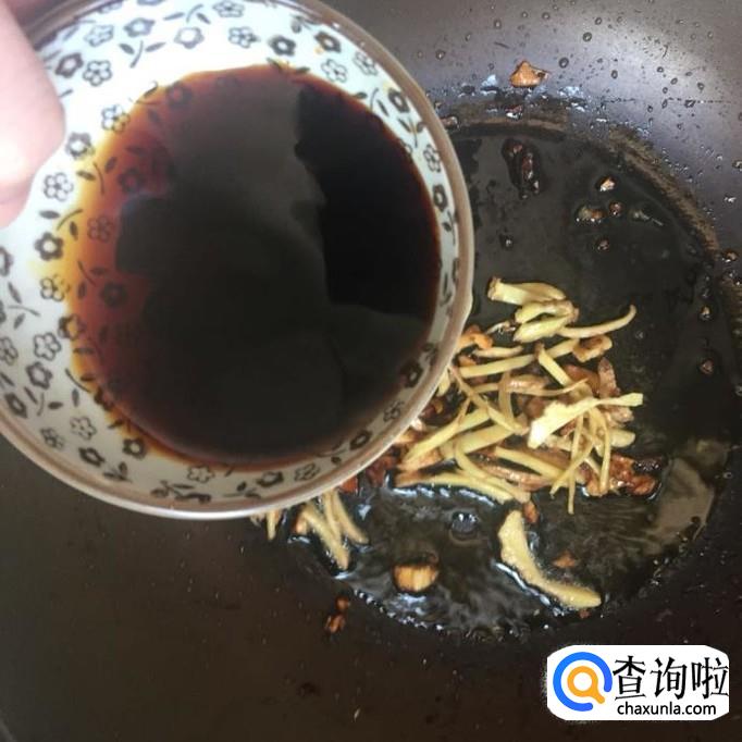 接着往锅中加入适量的酱油和白醋,如下图所示。