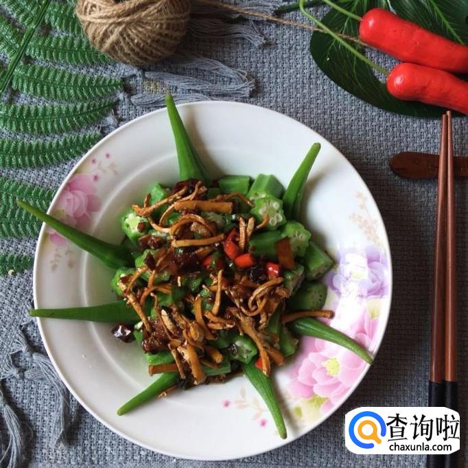 接着将调制好的酱汁浇淋在秋葵上面就可以了。