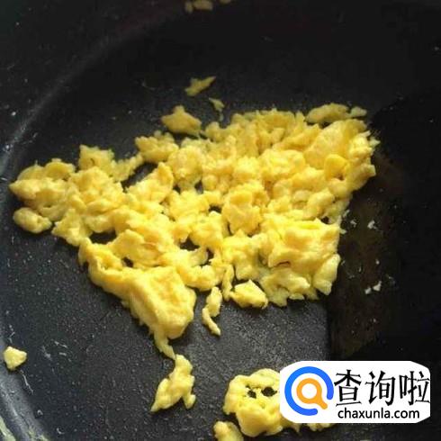 锅里倒入一些食用油,烧热之后把鸡蛋倒进去,用筷子快速的划开做成鸡蛋碎,然后盛出来。