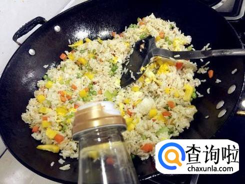 将米饭倒进去,快速的翻炒,可以适当加一点点水,一定要少,只要米饭变得软一些就行。然后加点食盐调味,出锅,就可以啦。