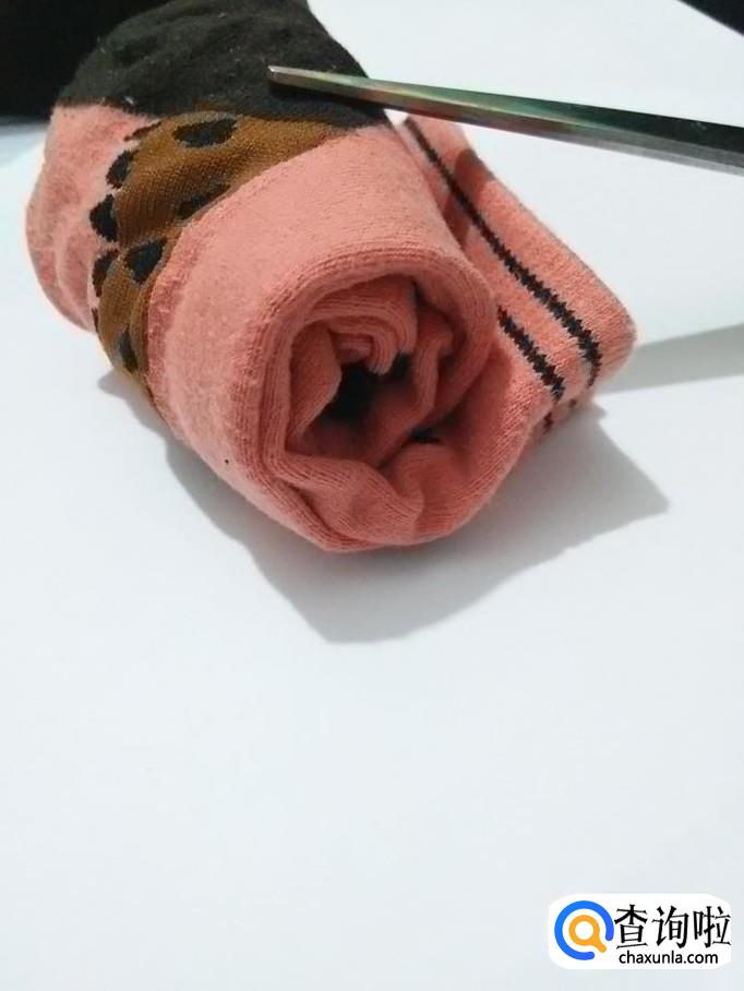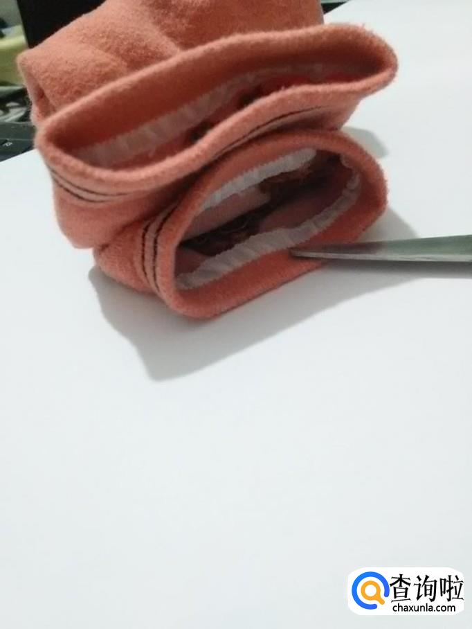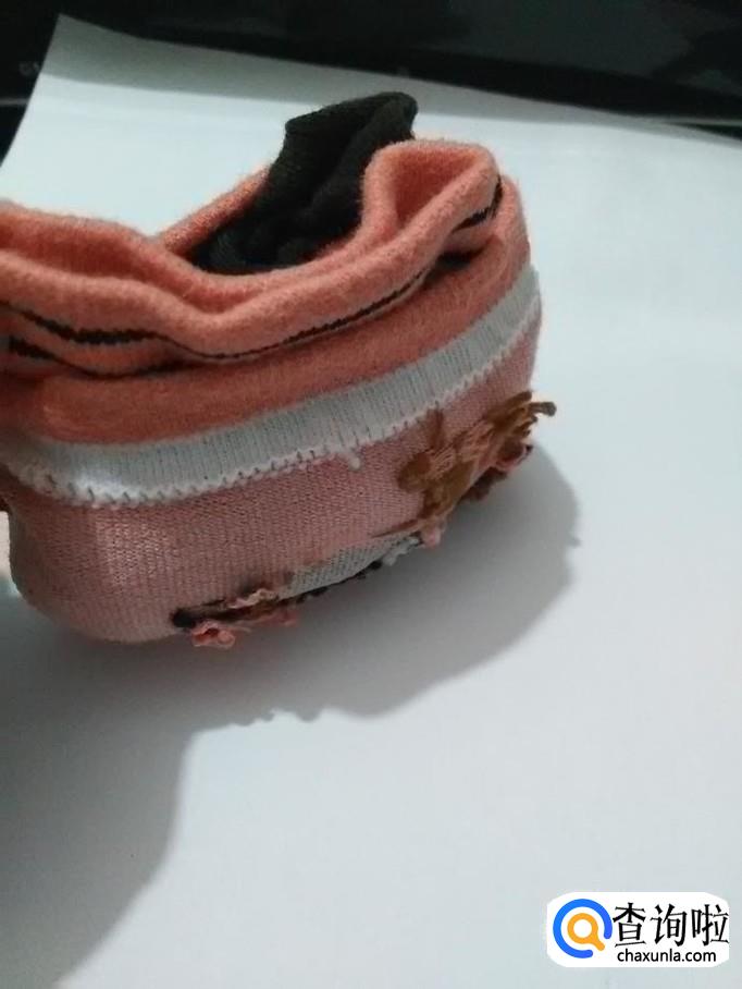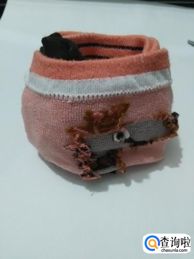 把这个袜子从下向上撑开,兜住整个袜子,形成一个小包裹的样子,这样折叠袜子,方便、整洁,还省地方。