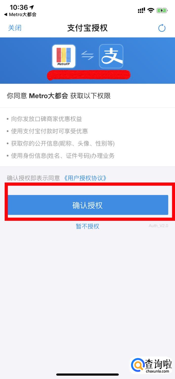 这是支付宝会再次拉取授权信息,点击【确认授权】。