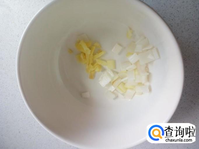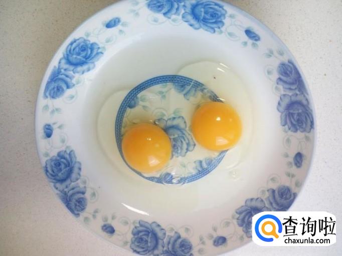 鸡蛋打入盘中,搅拌成蛋液,备用。