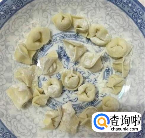 然后开始包馄饨,按照自己的手法包,一个金元宝馄饨就包好了。