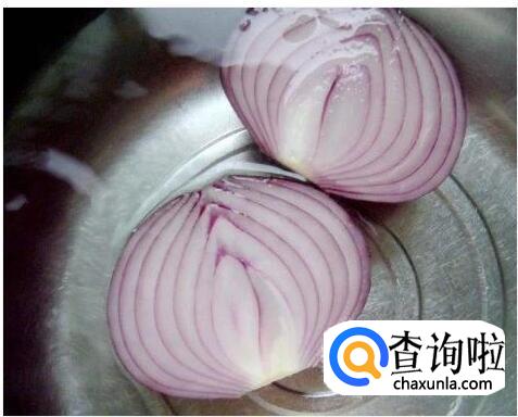 切成两半后,可以放入清水中浸泡一会儿,接下来切丝的时候就不会太辣眼睛。