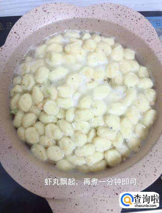 接着等到虾丸浮起,再煮一分钟左右就可以了。