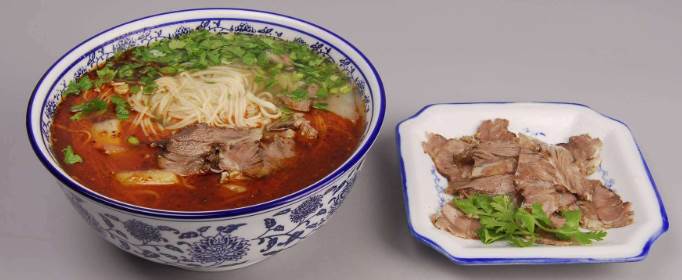 在牛肉面中,最著名的是兰州牛肉面。它的特点是肉烂汤鲜、面质精细,有一清(汤清)、二白(萝卜白)、三红(辣油红)、四绿(香菜绿)、五黄(面条黄亮)的特点;面条根据粗细也分为大宽、宽、细、二细、三细、毛细、韭叶子等。