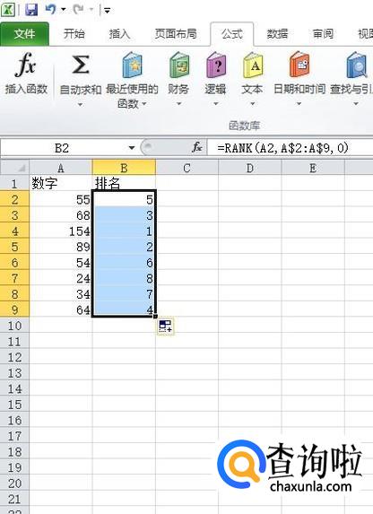 拖动填充柄,即可看到所有的数字排名都出来啦!