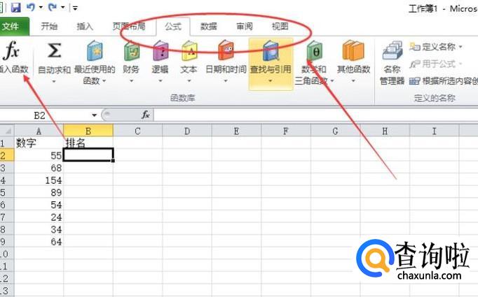选择“rank”函数。