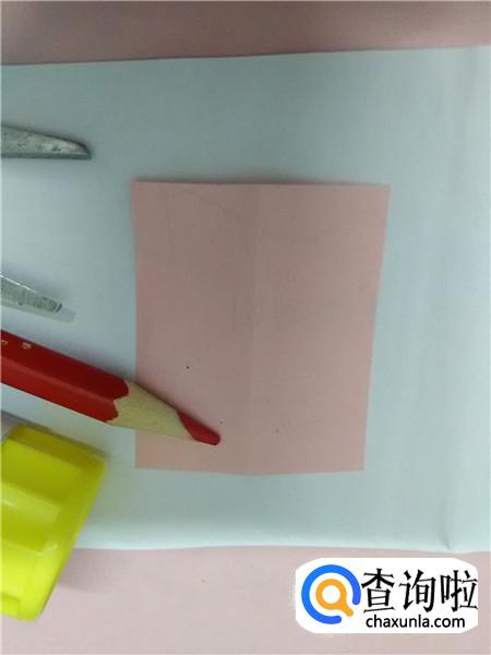 用彩笔在彩纸的左侧画出半个蛋糕和蜡烛。