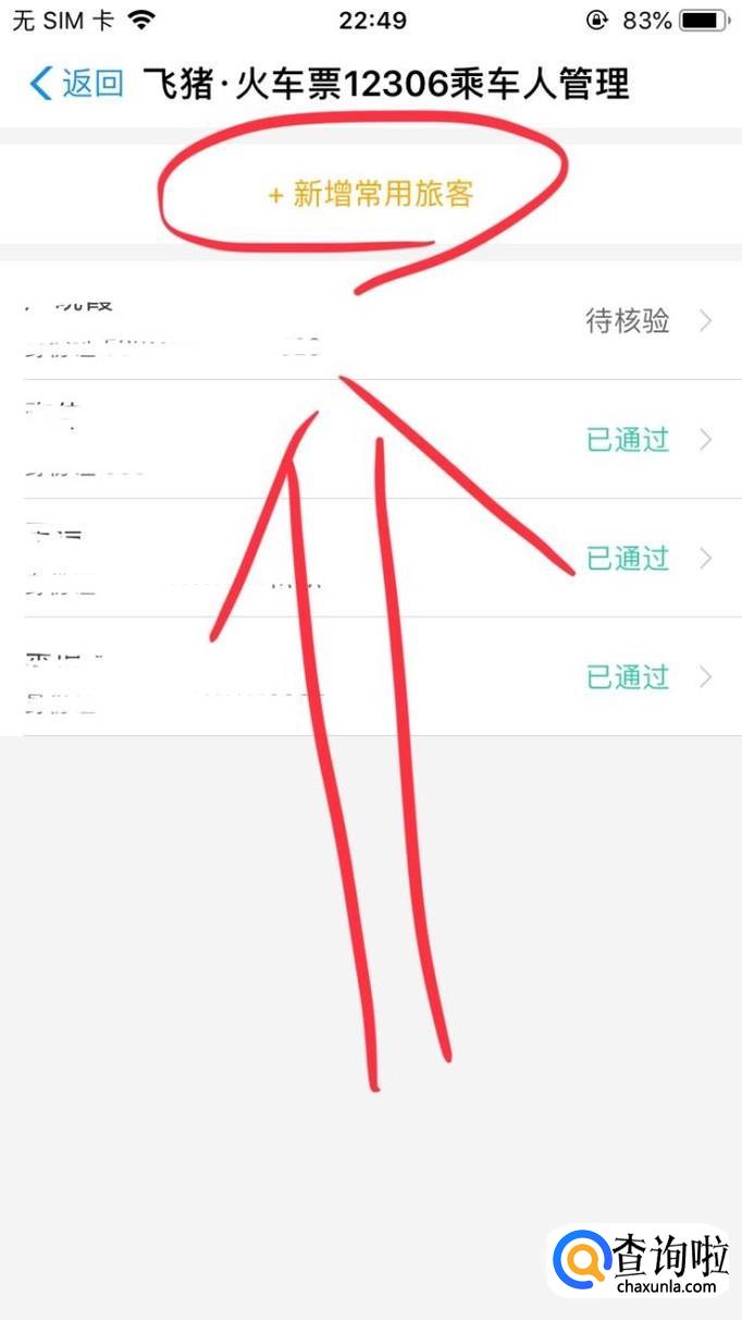 进入乘车人管理界面,点击最上方添加新增常用旅客。