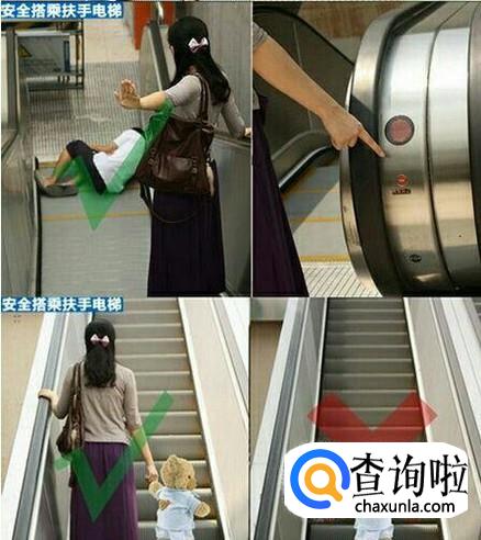 让孩子知道自动扶梯紧急按钮的位置,发生紧急情况的时候他们可以按住,但是告诉他们坚决不可以随便按