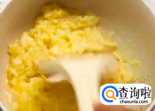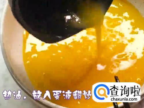 将鸡蛋打入碗里,加少量盐巴搅匀,然后下油锅翻炒成蛋花。