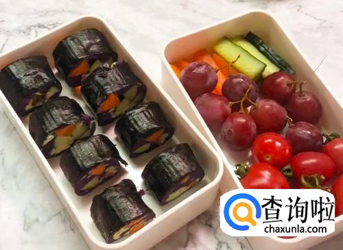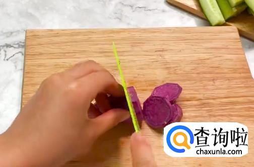 将黄瓜,胡萝卜洗净切条,将紫薯切片。
