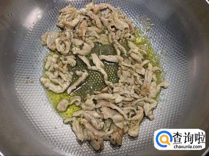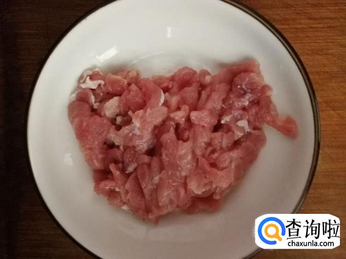 猪里脊肉清水洗净后,切成薄丝,加入淀粉、盐搅拌均匀。