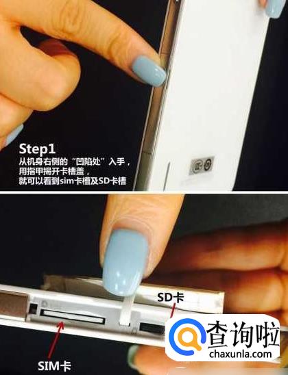 插入SIM芯片方法。