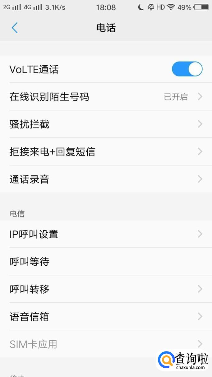 进入“电话”选项之后,将“VoLTE通话”关闭掉即可,如图所示。