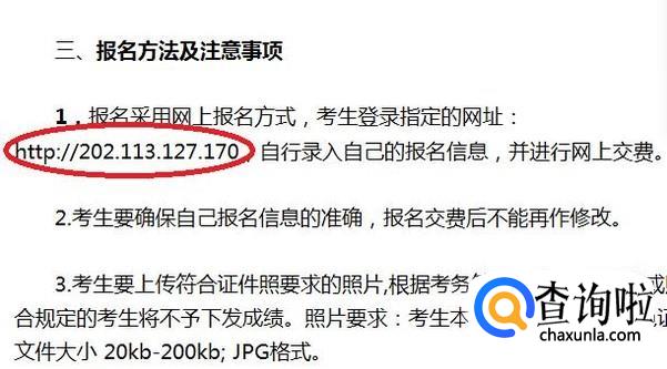 接着上一步可以看到报考简章和考点安排,包含报名入口和相关注意事项。复制网址并进入各省市网上报名系统。