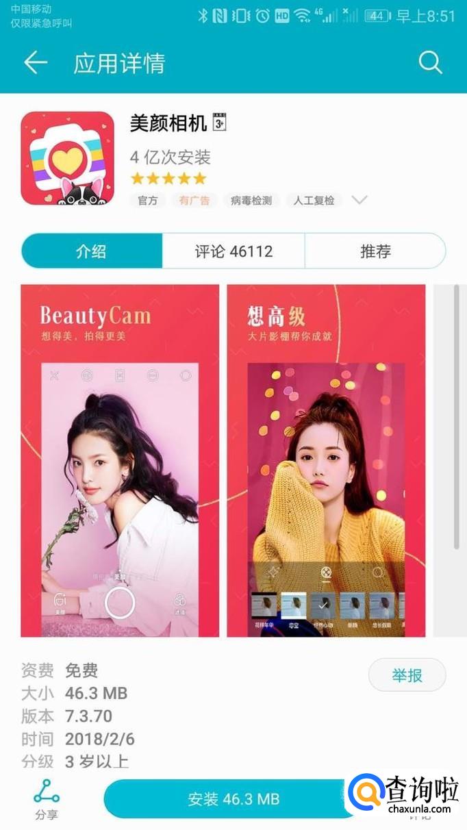 第四个App是美颜相机。这个几乎是女孩的最爱的App了。