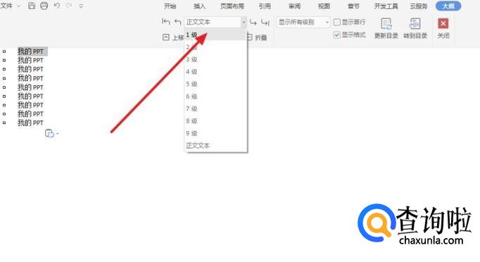 再设计其级别,设置完成后点击关闭大纲视图即可。