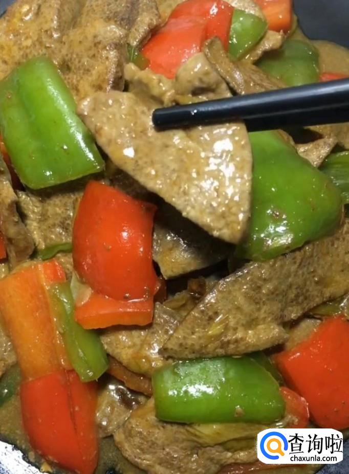 最后出锅装入盘中,美味的青椒炒猪肝就制作完成啦!